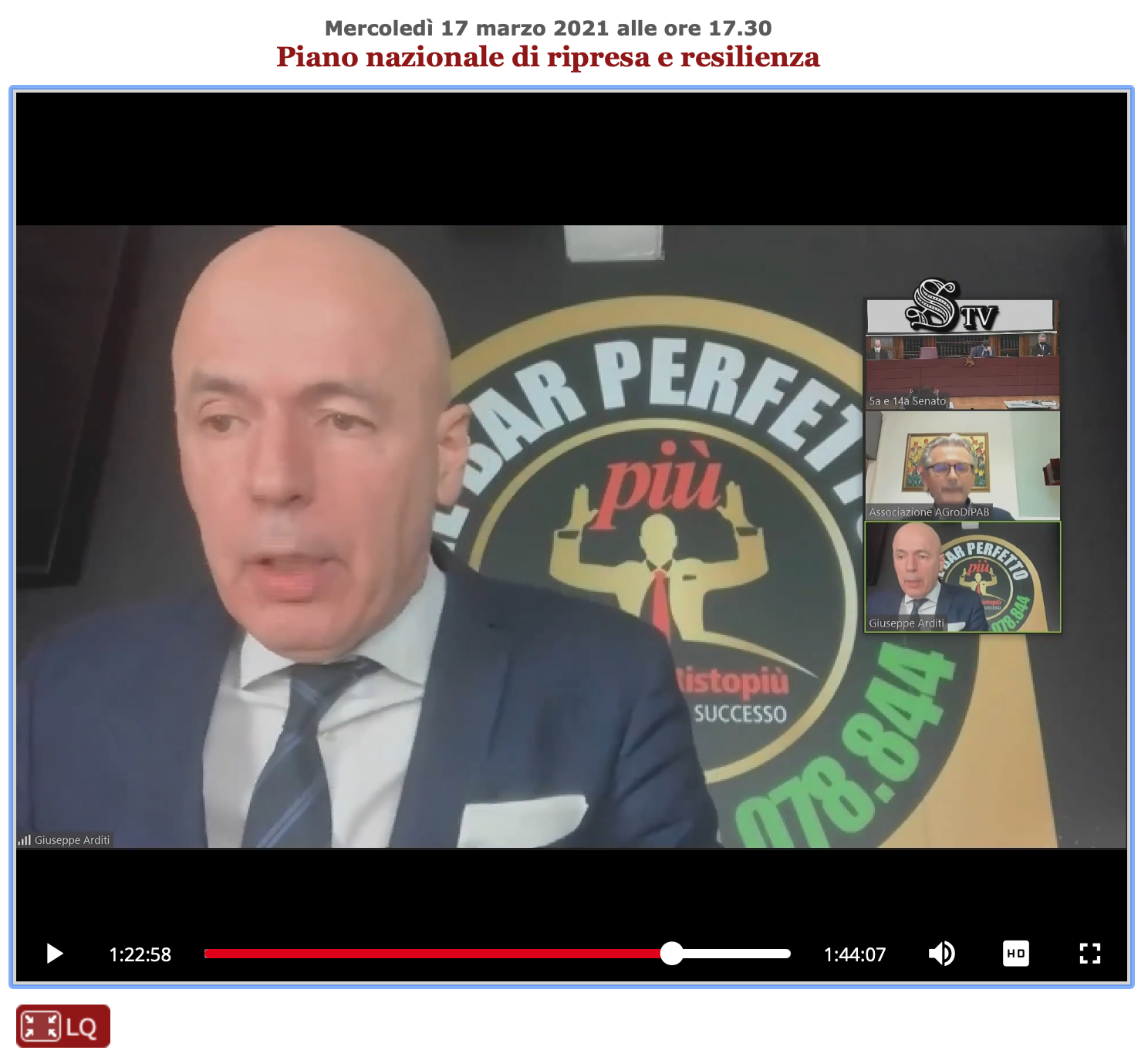 L’intervento di Giuseppe Arditi è visionabile al minuto 1.20.30 al seguente link