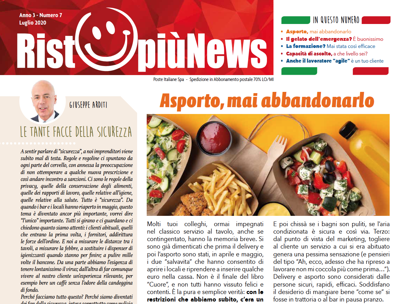-l’editoriale a firma del Presidente Arditi nel quale si ragiona sul termine “sicurezza” abbinato sia alle questioni igieniche e alimentari, sia alla voglia delle persone di sentirsi protette quando entrano nei locali