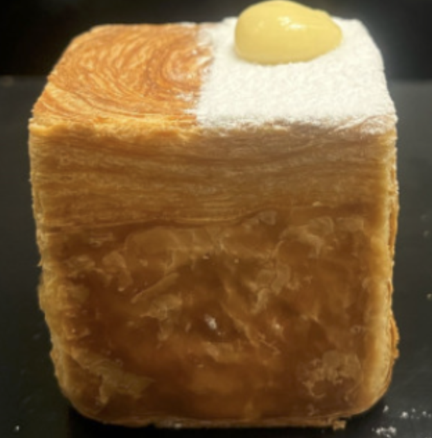 Un croissant. Che però non si può definire tale, dato che ha la forma non della classica mezza luna, bensì di un cubo perfetto. Un cubo di Rubik, da guardare da tutti i lati e poi addentare, partendo da un angolo.