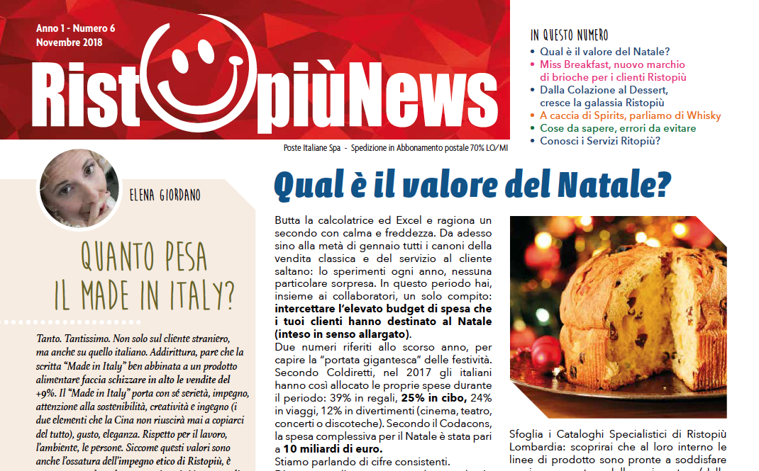 L’operazione Natale è il cuore del nuovo numero del magazine RistopiùNews, in distribuzione proprio in questi giorni presso tutti gli esercizi che ne hanno fatto richiesta.