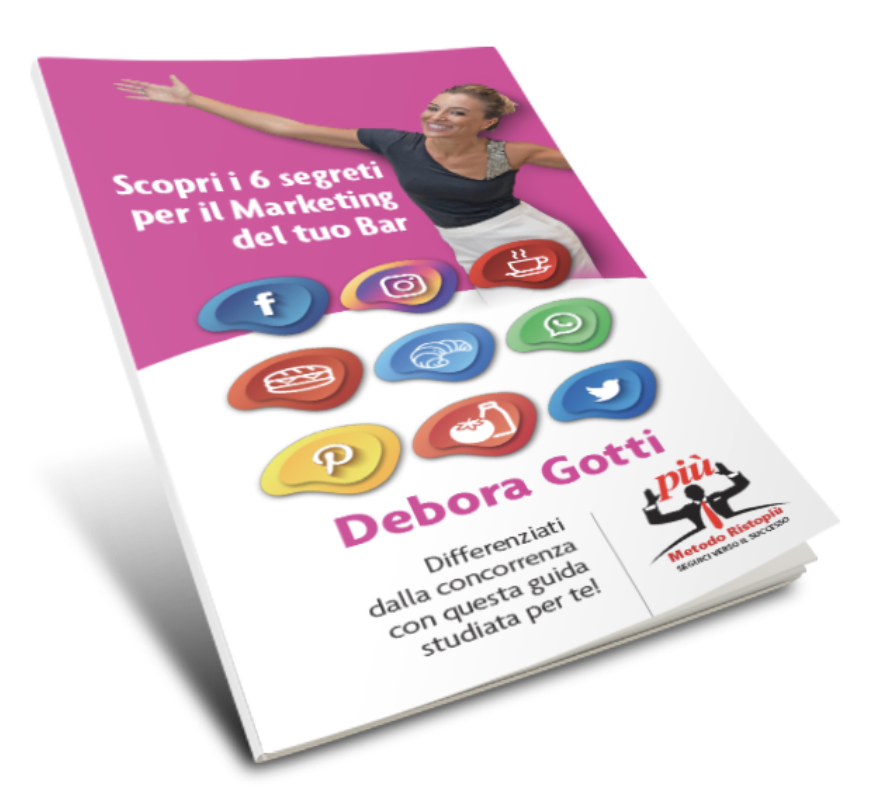 Questo e altri importantissimi argomenti per la gestione del locale sono inseriti nella guida “Scopri i sei segreti per il marketing del tuo Bar”, scritto da Debora Gotti, direttore Marketing di Ristopiù Lombardia, a cura del Metodo Ristopiù.