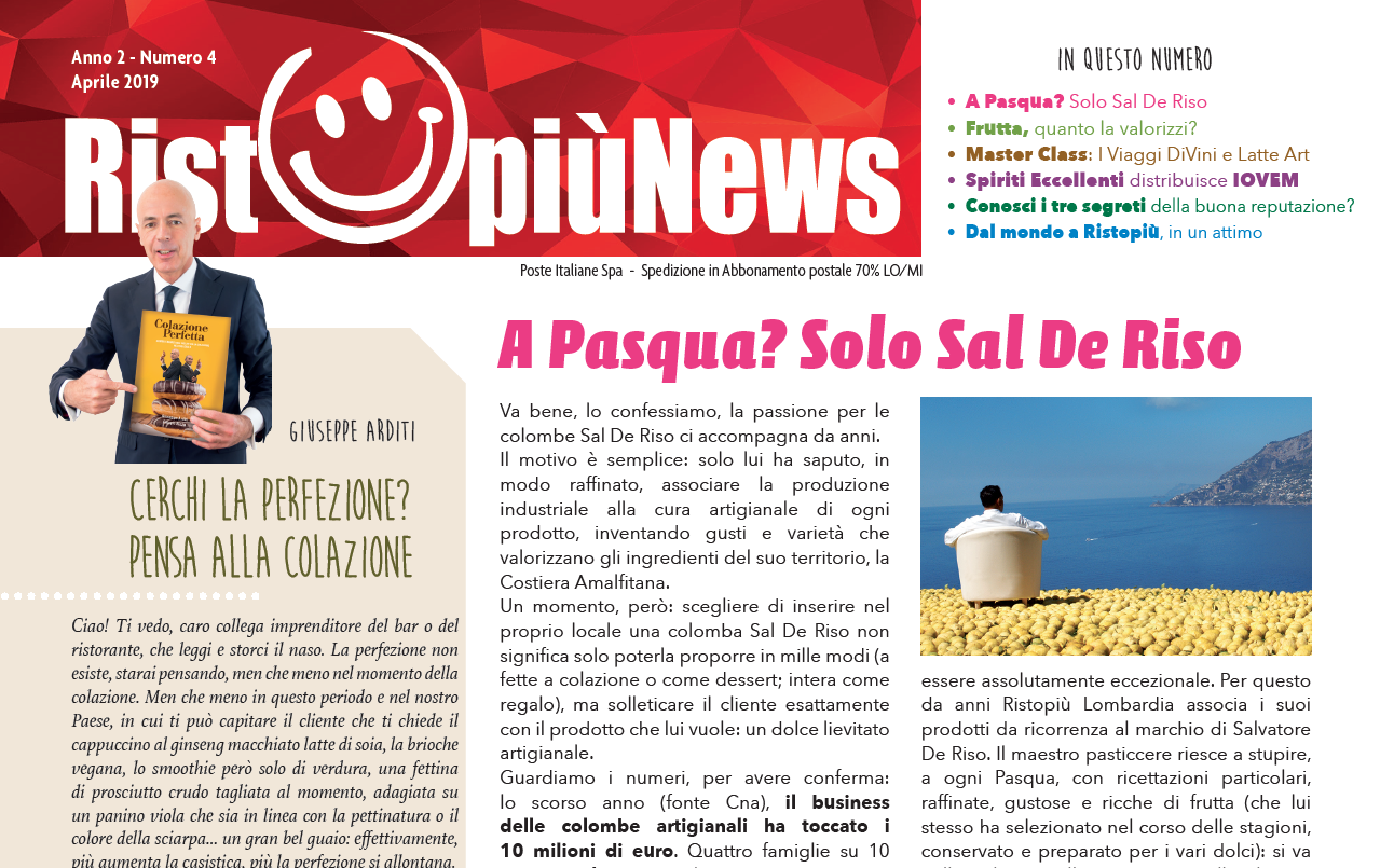 -Con la Pasqua che si avvicina a spron battuto, il numero di aprile non poteva non aprirsi con l’elogio della dolcezza e di tutti i prodotti firmati Salvatore De Riso, che Ristopiù Lombardia distribuisce (dalle colombe alle monoporzioni, www.ristopiulombardia.it).