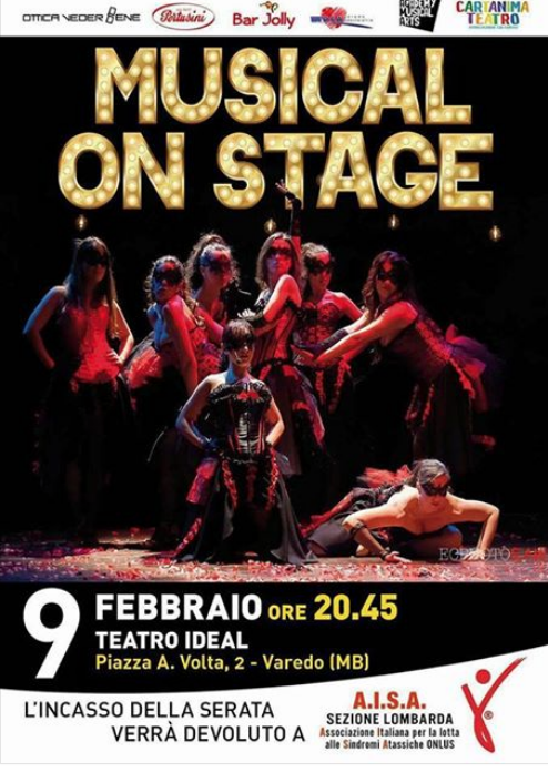 Facciamo un grosso in bocca al lupo agli artisti dell’Academy Musical Art di Seregno, che questa sera, 9 febbraio (inizio ore 20.45), daranno vita all’evento Musical On Stage, il cui ricavato sarà devoluto all’associazione AISA. Lo spettacolo si terrà presso il teatro Ideal di Varedo (MB). Sarà presente anche Ristopiù Lombardia, attraverso i prodotti offerti per il catering. AISA sezione Lombardia è la onlus che si dedica a combattere le sindromi atassiche.
