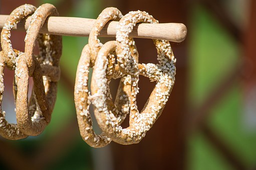 Il brezel, il famoso pane di origine tedesca intrecciato e coperto di grani di sale grosso, può diventare oggetto di arredamento, in maniera molto semplice e veloce.